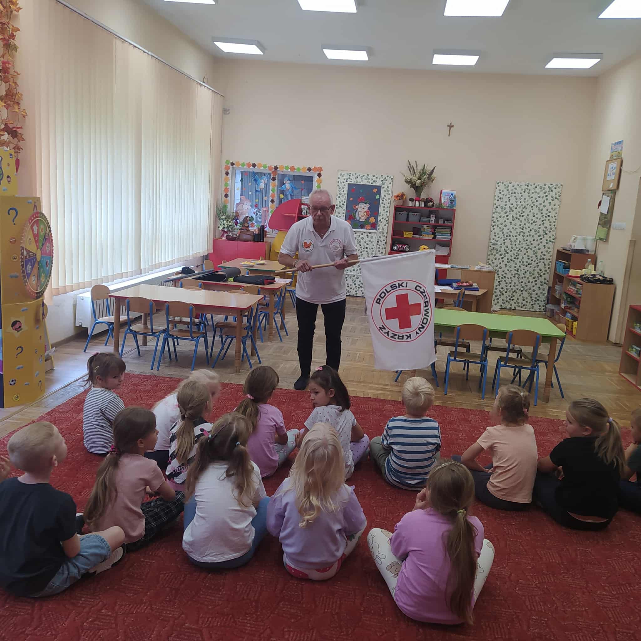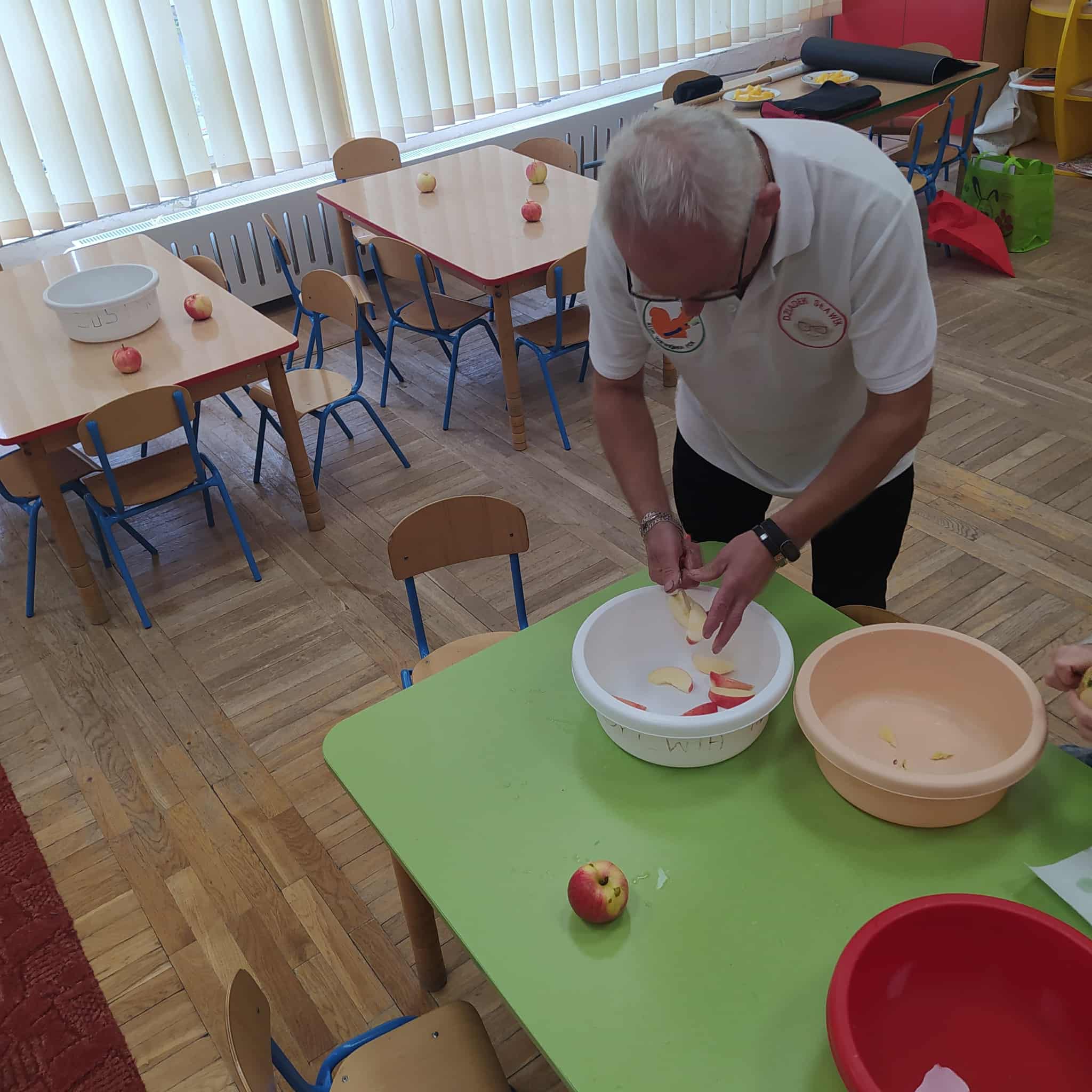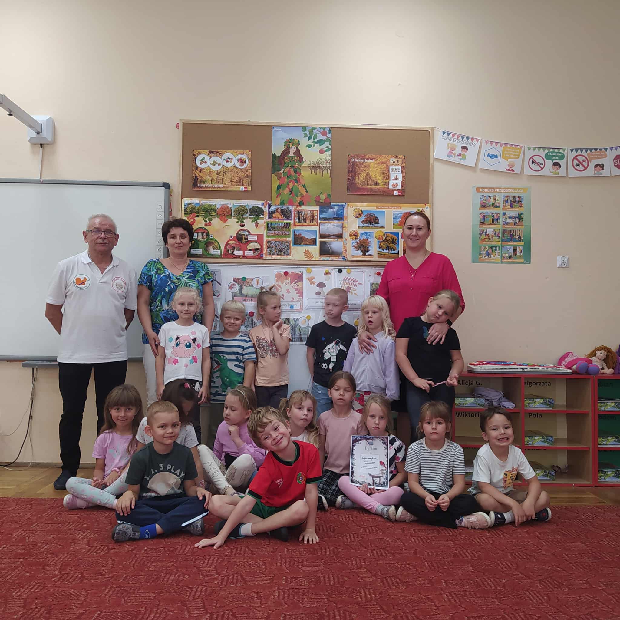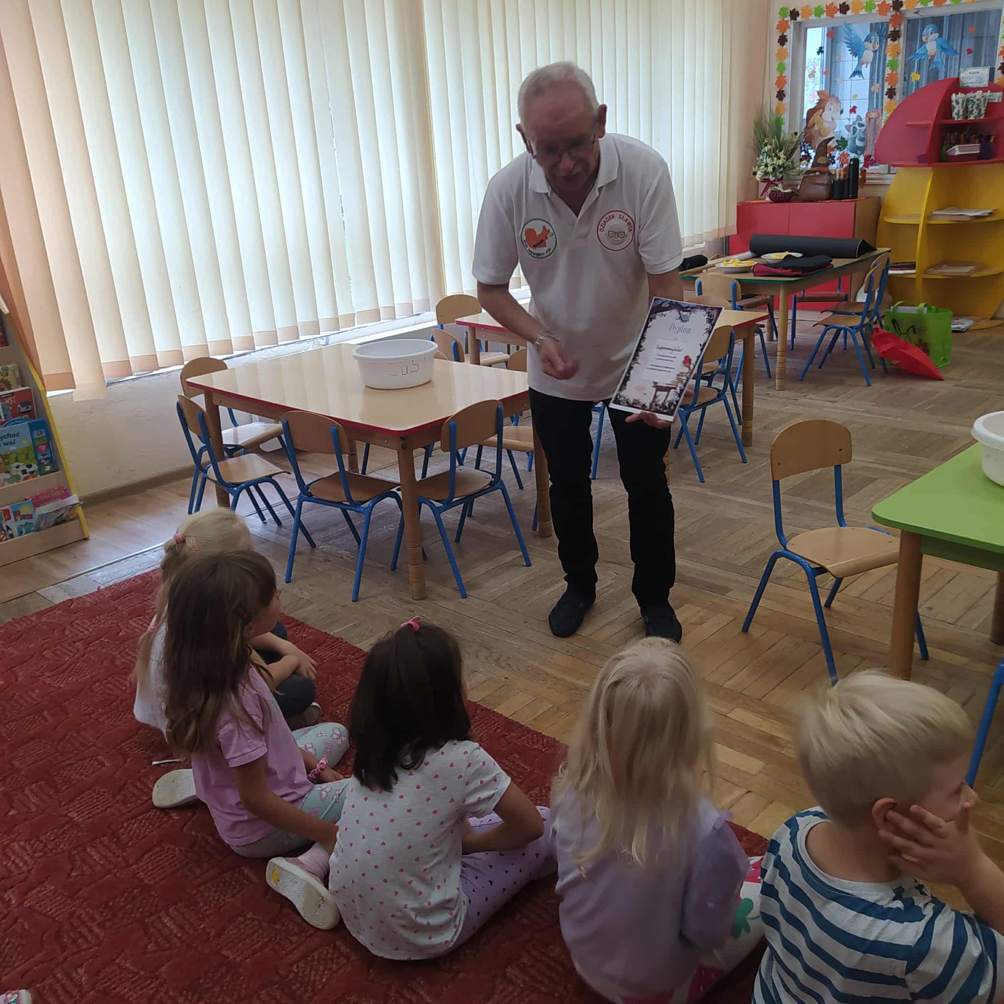 Nasze przedszkole odwiedził Super Gość "Dziadek Sławek ". Supersmyki dowiedziały się co to jest PCK. Przypomnieliśmy sobie zasady bezpieczeństwa na drodze oraz jak należy zachowywać się w lesie . Supersmyki wykazały się dużą wiedzą o mieszkańcach lasu i chętnie dalej słuchały naszego gościa. Dziadek Sławek opowiadał również jak ważne jest dbanie o higienę oraz dbanie o czystość tego co jemy. Dzieciom wiele radości sprawiło mycie jabłuszek od dziadka Sławka, a później nastąpiła ich degustacja.Bardzo dziękujemy za miłe spotkanie i już nie możemy doczekać się kolejnego.