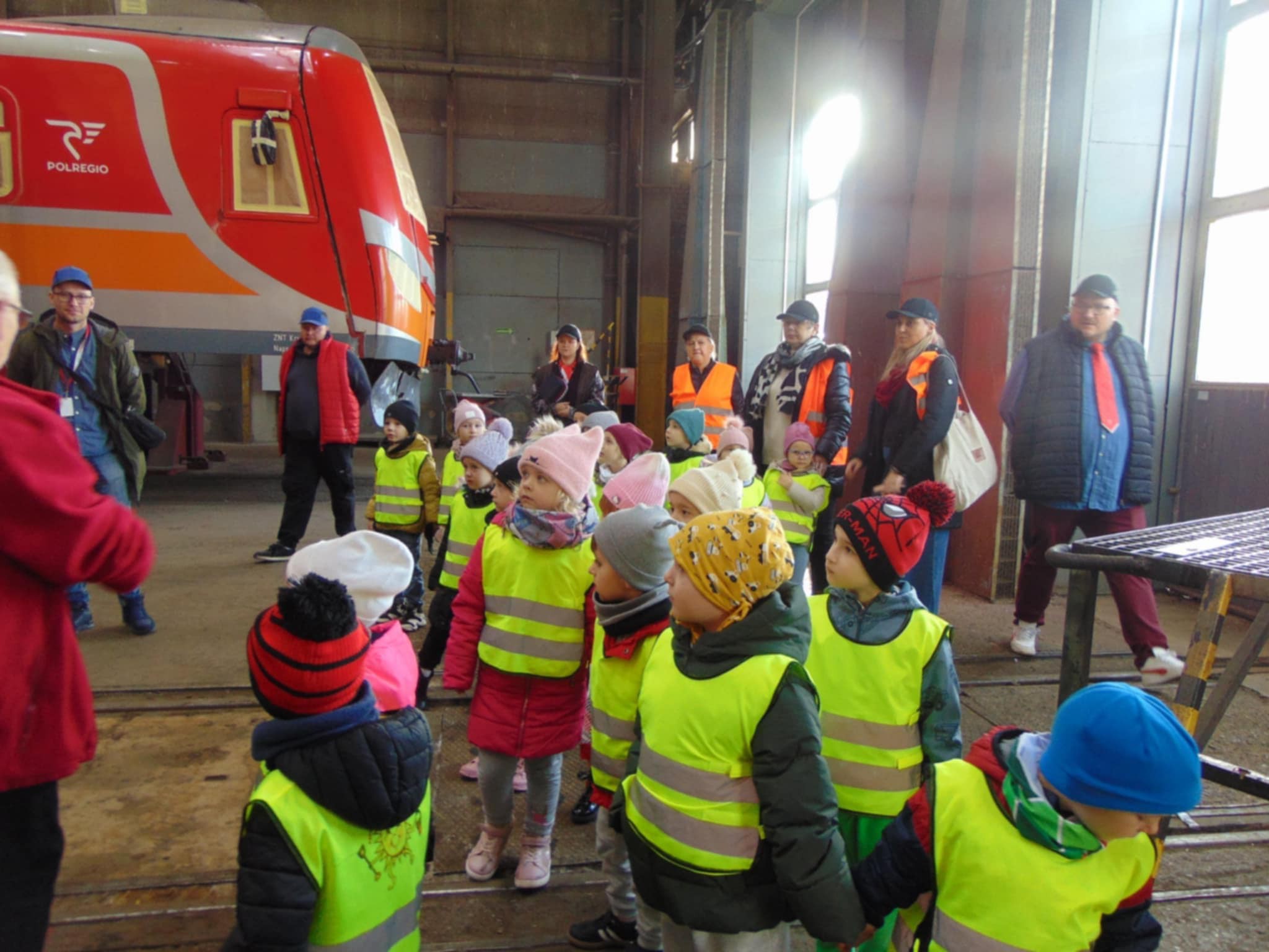 W listopadzie dzieci z grupy Tygryski oraz Supersmyki wybrała się na wycieczkę do POLREGIO w Kruszewcu. Dzieci wraz z dziadkiem Sławkiem miały okazje od podstaw zobaczyć jak wygląda praca przy pociągach. W trakcie zwiedzania dzieci dowiedziały się interesujących rzeczy na temat tych fantastycznych pojazdów. Jednym z punków wycieczka była krótka przejażdżka pociagiem. Oprócz tego na przedszkolaki czekał słodki poczęstunek oraz prezent dal każdego.